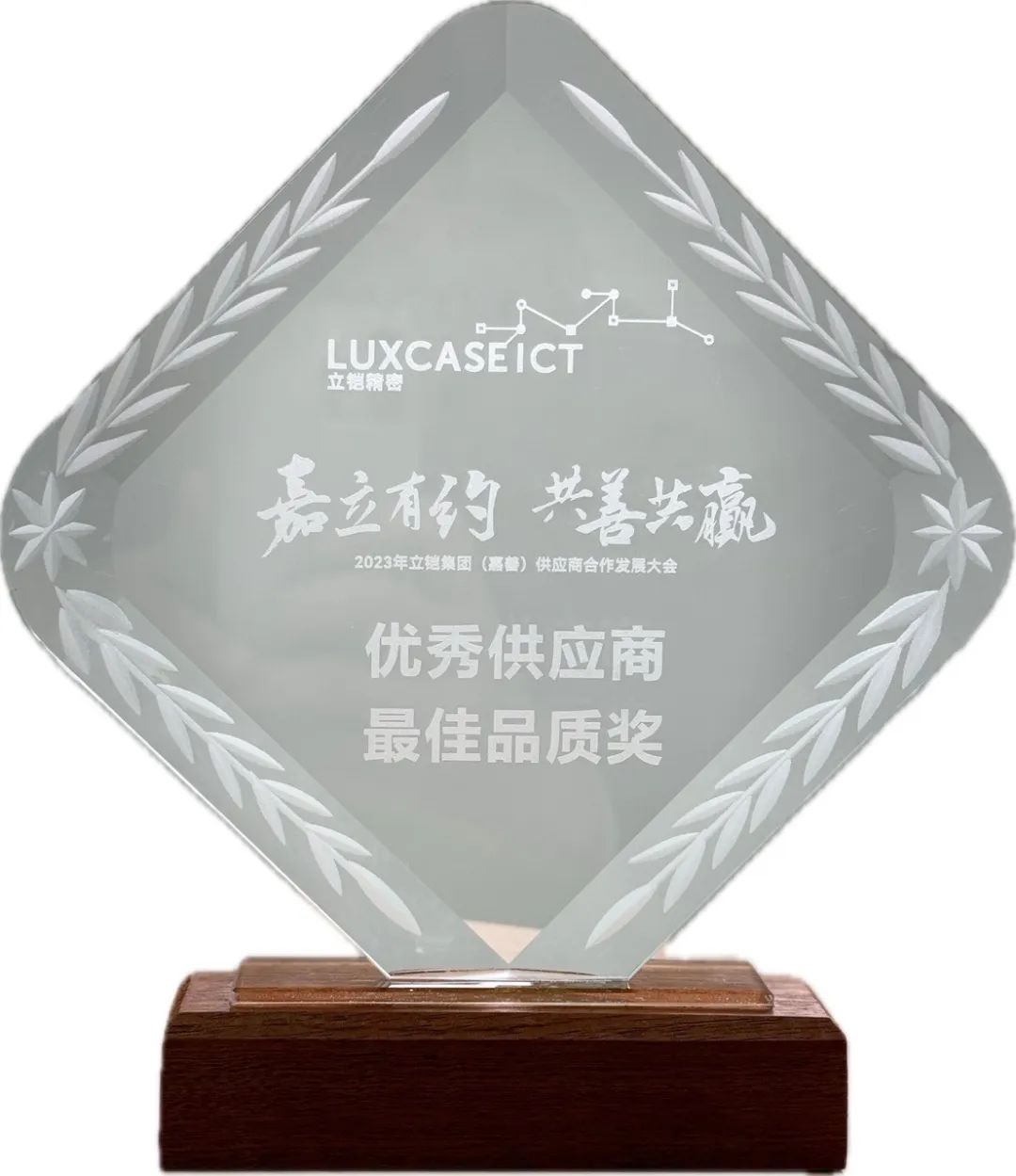 2024年1月, 立鎧集團在浙江嘉興召開了“嘉立有約 共善共贏”為主題的年度供應商大會,浙江水晶光電科技股份有限公司榮獲“立鎧集團2023年度最佳品質供應商獎”。